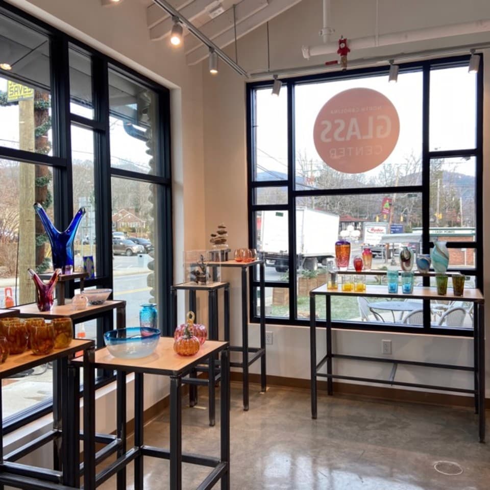 The North Carolina Glass Center is a nonprofit public access facility dedicated to education, exploration, and collaboration in all forms of glass. Our building contains a gallery, exhibit space, hot shop, flame shop and cold shop. We have over 60 artists that work and sell out of our space.