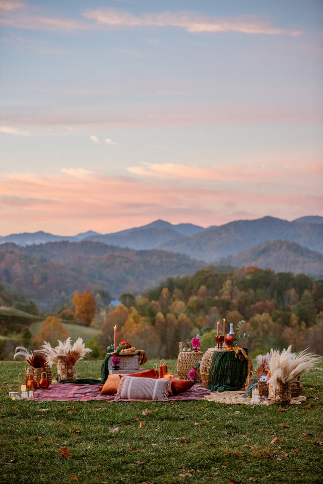 Escape into a world of comfort and style with our luxury picnic services in Asheville, North Carolina. Whether you’re planning a romantic date, a milestone celebration, or an intimate wedding, we specialize in creating unforgettable picnic experiences tailored to your vision. We handle everything from design and setup to cleanup, so all you need to do is arrive and enjoy. Our curated picnic spaces are perfect for a variety of occasions, including proposals, anniversaries, birthdays, elopements, micro weddings, bachelorette parties, and more. Choose from stunning locations such as scenic parks, the breathtaking Blue Ridge Mountains, our partnered wedding venues, or even your own backyard or vacation rental. No matter the setting, we ensure your space is thoughtfully styled and equipped with all the comforts to create a unique memory. We collaborate with Asheville's amazing local food vendors to bring you delicious, high-quality cuisine for your event. Our team takes care of all the heavy lifting—packing, transportation, setup, and breakdown—allowing you to fully relax and savor the moment. From cozy blankets and elegant table settings to personalized touches, we aim to create an experience as beautiful and stress-free as possible. Let us bring your dream picnic to life in Asheville, where the beauty of nature meets the joy of celebration.