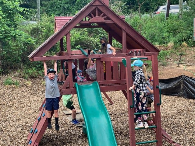 We are a neighborhood family-friendly local joint that specializes in great food & local draft brews! Nestled in the beautiful Haw Creek neighborhood on over 2 acres, a flowing creek provides a peaceful dining experience outside. We source locally and proudly serve Hickory Nut Gap and Creekstone Farms products and specialize in burgers, pizzas, wings and brews! Creekside features over 20 craft brews on draft with lots of local brewers. We also offer one of the largest outdoor seating areas where dogs are welcomed and loved! Our restaurant features a playground area for the kiddos, 10 T.V.'s, 8 inside and 2 outside, that always show the latest games.