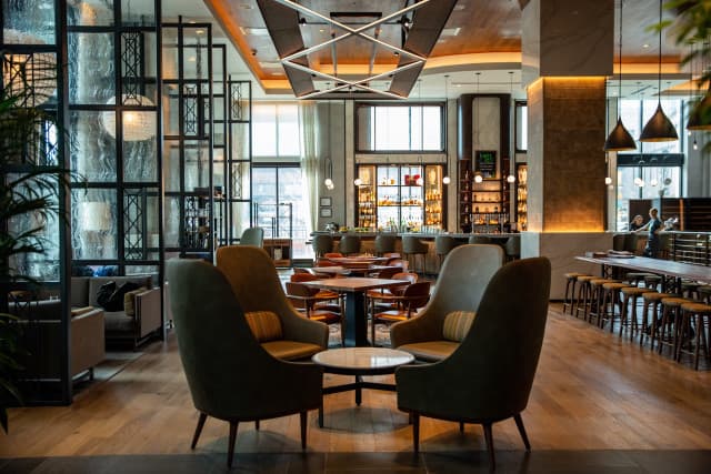 District 42® is a convergence of small shareable plates, warm hospitality, and craft cocktails in the vibrant center of downtown Asheville, on the ground floor of the Kimpton Hotel Arras. Our all-day lounge and expansive bar is open seven days a week offering a mix of tables and soft seating. Our sister restaurant Bargello® features full-service whole preparations to share around the table.