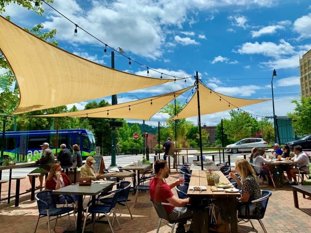 Twisted Laurel Downtown offers casual, creative American comfort food with a Twist - like handmade pasta and other tasty entrées, stone hearth pizza pies, fresh salads, delicious handhelds like subs and award-winning burgers, and more. There's also a full bar with craft cocktails, dozens of beers and wines, and plenty of NA options to enjoy. Whether on our large, dog-friendly patio adjacent to Pack Square Park or in out expansive dining room, there's not a bad seat in the house.