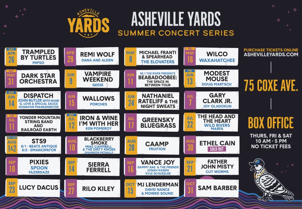 - This new outdoor venue in the heart of downtown Asheville gives you ALL the things you want - music, movies, tacos and local beer & beverages. No pets allowed, but kiddos are - bring the family. Open Daily! Reservations are encouraged on the weekends and walk-ins work for weekdays. Pandemic procedures are in place for everyone's safety. Check out the website to stay updated on coming events and hours.