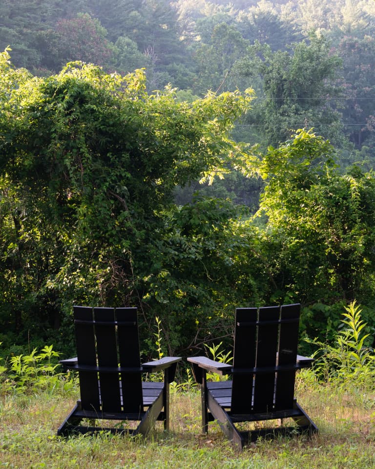 Escape to our tranquil cabins nestled along Shope Creek in the heart of the Blue Ridge Mountains of Western North Carolina. Our newly built modern cabins provide a peaceful oasis on 22 wooded acres for you to relax and unwind. We are located in East Asheville close to the Blue Ridge Parkway, Pisgah National Forest, and Warren Wilson College, and just 20 minutes to Downtown. Get the best of both worlds at Firelight thanks to a mix of vibrant city attractions and the natural beauty that makes Western North Carolina so famous. At Firelight you can take a stroll along our private hiking trails or lounge by the creek. Our raised garden beds and chicken coop provide fresh eggs, veggies, and herbs during your stay. Our small cabins sleep 2 guests and the larger home sleeps 4 guests and are perfectly suited for everything from romantic weekends to girlfriend getaways to small wellness retreats.