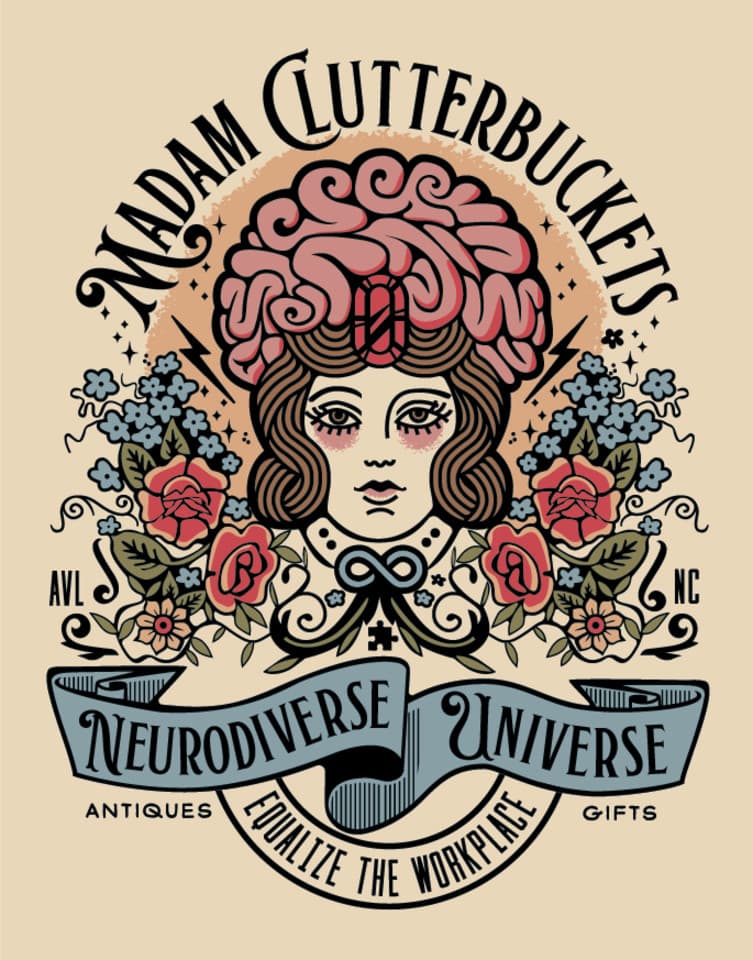 - Madam Clutterbucket's Neurodiverse Universe is a unique downtown Asheville gift shop carrying vintage & new laugh-out-loud, eccentric & altogether rock n’ roll merchandise. Our store functions as a safe and accommodating space of continued learning and job skills support for adults with developmental disabilities. We want to highlight abilities over disabilities and promote the fact that disability rights are human rights and neurodiversity makes our community stronger.