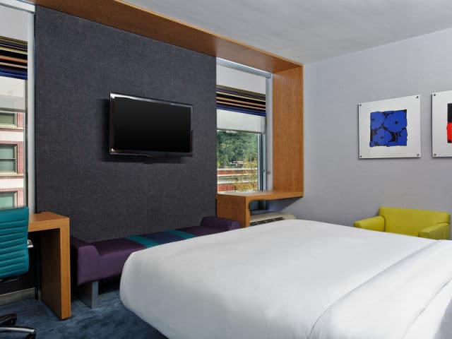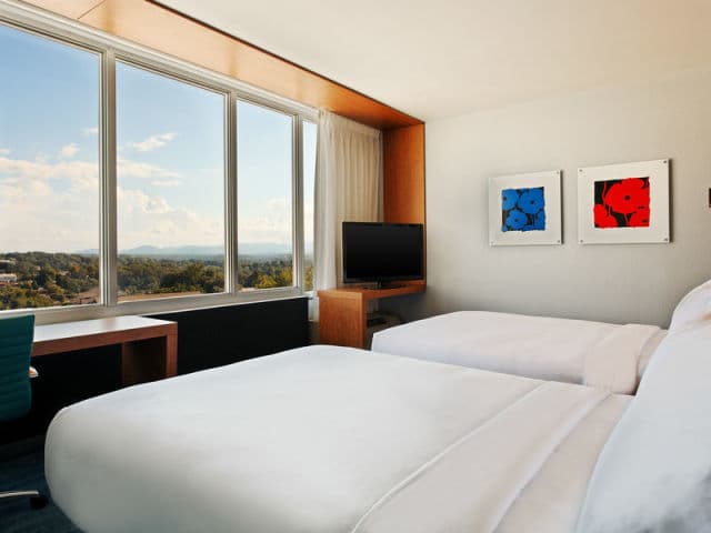 Celebrate your style at Aloft Asheville and experience downtown as never before. Located within walking distance of many restaurants, shops and entertainment venues. Stunning views from several vantage points throughout the hotel. Loft-style rooms with a contemporary, urban feel, along with unique amenities like the W xyz bar and dining with an outdoor observation deck that overlooks Biltmore Avenue. Also enjoy the third-floor pool deck with cabanas and beautiful mountain views. Comp WiFi throughout the hotel. Secured garage parking adjoining the building. State-of-the-art fitness facilities. Full breakfast served onsite including Starbucks coffee. Pet friendly with no pet fees and no size or weight restrictions!