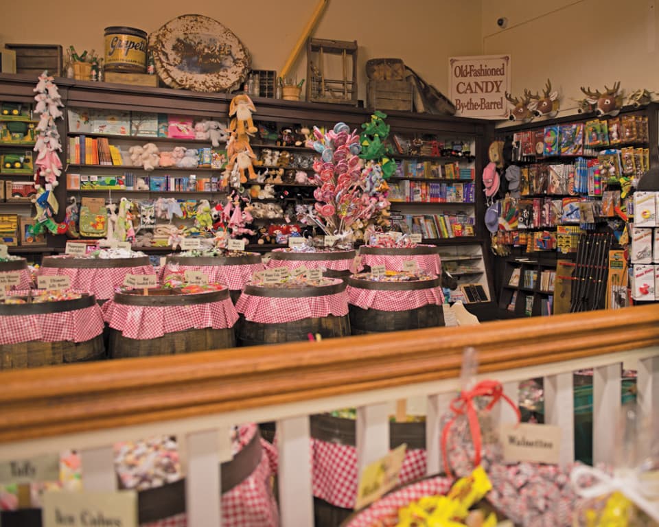Shop a mercantile filled with all you need for life - traditional clothing, comfortable footwear, outdoor and travel gear, locally made and gourmet foods, sturdy rocking chairs and toys powered by imagination. Take a walk down memory lane through barrel after barrel filled with old-fashioned candy.
