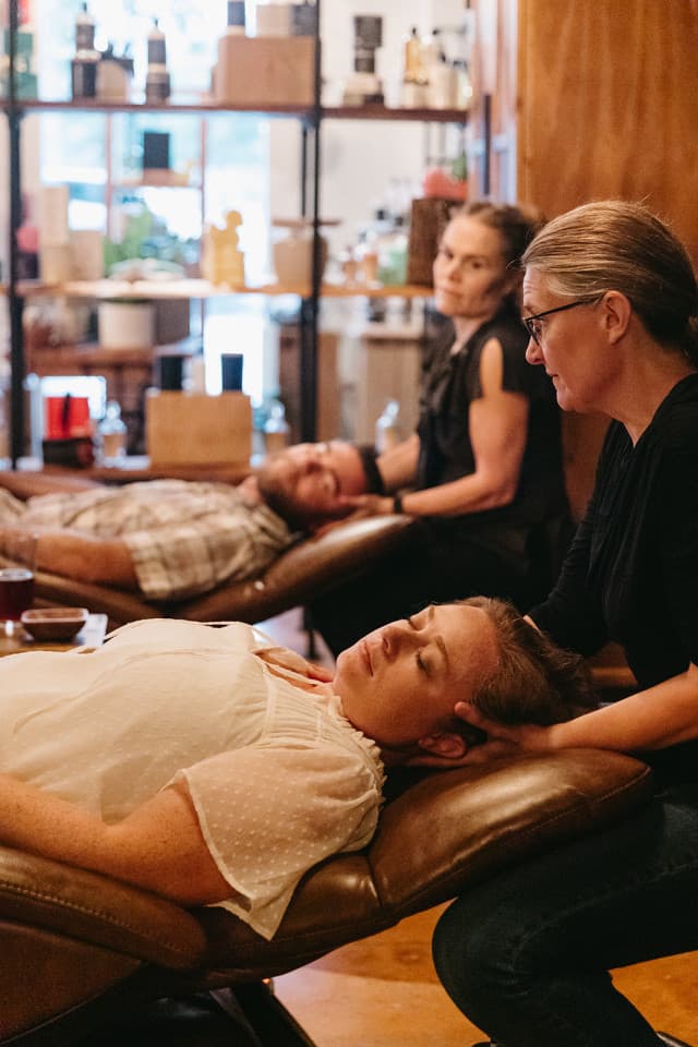 What makes Recline & Unwind unique is its one-room, open space concept. Guests are encouraged to chat, laugh and socialize. Recline & Unwind Social Spa was designed for total well-being by providing hands on healing with a social wellness twist.