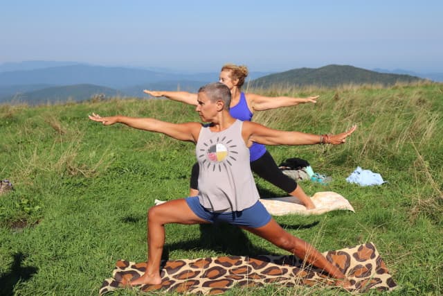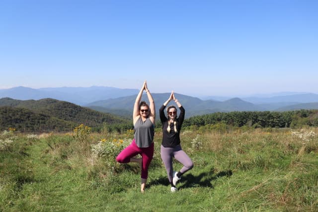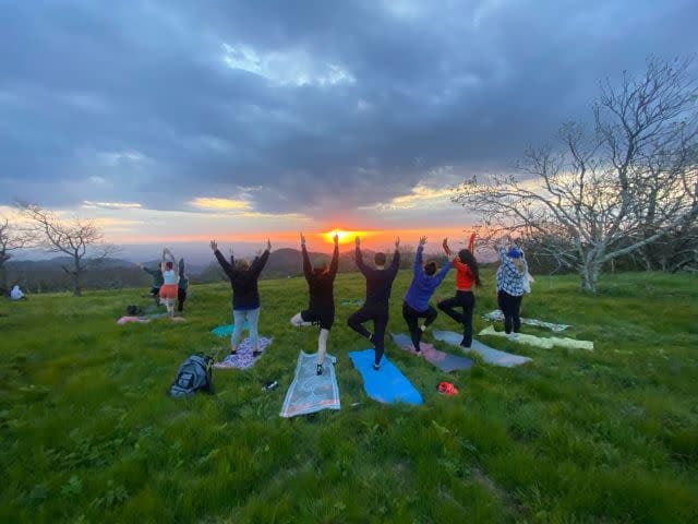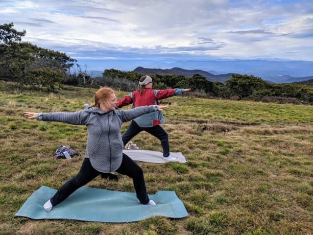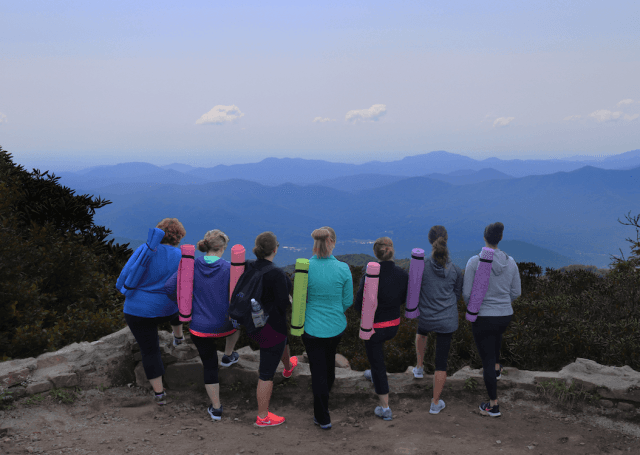 ⛰️ Our unique micro retreat™ experiences combine yoga, hiking and meditation with the best mountaintop views, waterfalls, sunsets and vortex in Western North Carolina. We welcome men, women, beginners, individuals, families, friends, couples and groups. We provide yoga mats, take pictures and lead small, public tours of 10 people or less. (Contact us for larger and private groups.)Â
