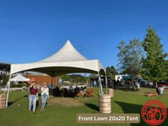 20x20 Tent Rental:Last but certainly not least, we have two 20'x20' tents on our front lawn available for small gatherings. Each space can accommodate 30 guests. These come with two picnic tables and staff in assisting your event. There will be access to our indoor and outdoor bars as well.