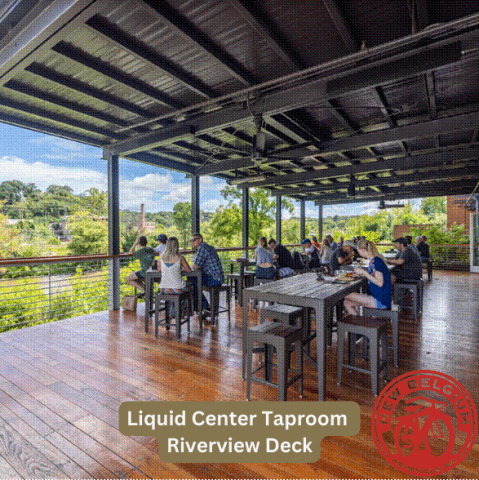 Reserve the newly renovated Riverview Deck attached to the Liquid Center at New Belgium Brewing Company. The Riverview Deck allows for a casual private experience alongside the sights and sounds of the Riverlink Greenway and the River Arts District while y'all enjoy pints on our covered outdoor deck. This space provides the comforts of the rushing river and a breezy open space complete with Wi-Fi, fans & heaters, a well-rounded beverage list of house ales, wine options and hard seltzer. The Riverview Deck is perfect for casual gatherings, non-profit fundraisers, company mixers/ happy hours