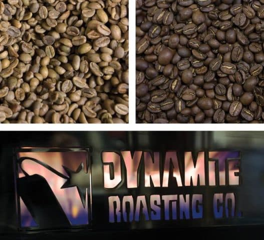 - We invite you to sip a cappuccino by the fireplace or enjoy the mountains and a great cup of coffee from our deck. We work hard at finding the highest quality sustainable beans from around the world and our old-school, small-batch roaster is fired up every day to ensure that our coffee is at its peak flavor when it reaches your cup! Hatched as a grand idea between sets at a late night gig, musicians and band mates Andy Gibbon and Josh Gibbs decided they should provide the Asheville area with truly delicious, locally roasted, organic coffee. Come visit us at the Dynamite Coffee Bar for the full range of Dynamite coffees!