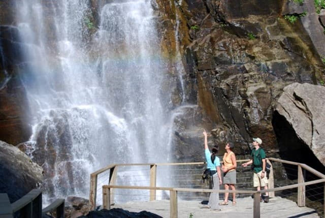 The top of the rock can be reached by either an elevator inside the mountain or the 500+ stairs up the Outcroppings Trail. The elevator has been operating and servicing the public since 1949 and ascends 26 stories in just over 32 seconds. For the “Stairmaster” enthusiasts or pet walkers, the Outcroppings Trail, features numerous points of interest along the way, like Gneiss Cave, Pulpit Rock, and the “Subway”.