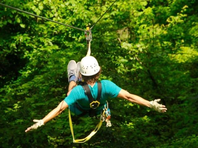 Zipline with us & experience the beauty of the Appalachian Mountains while you soar from tree to tree in a scenic mountain setting. Our zipline adventure course is tree-based with 10 lines ranging in length from 75-1,000 feet long – totaling over one mile of cable! The professional French Broad Ziplines staff will make sure your trip is safe, fun & exciting. The views are stunning, the adventure is astounding & your memories will be unforgettable. Want to really see the mountains? Zipline tours are one of the best activities for exploring the beautiful mountains of Western North Carolina. Zipline with kids or friends – the best ziplines in NC are waiting for you!