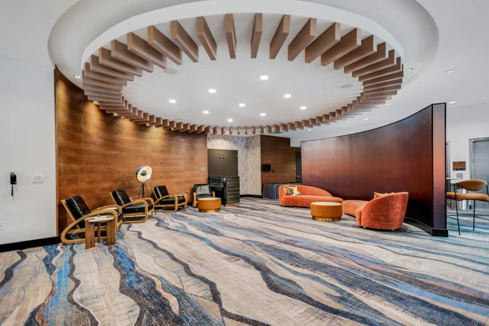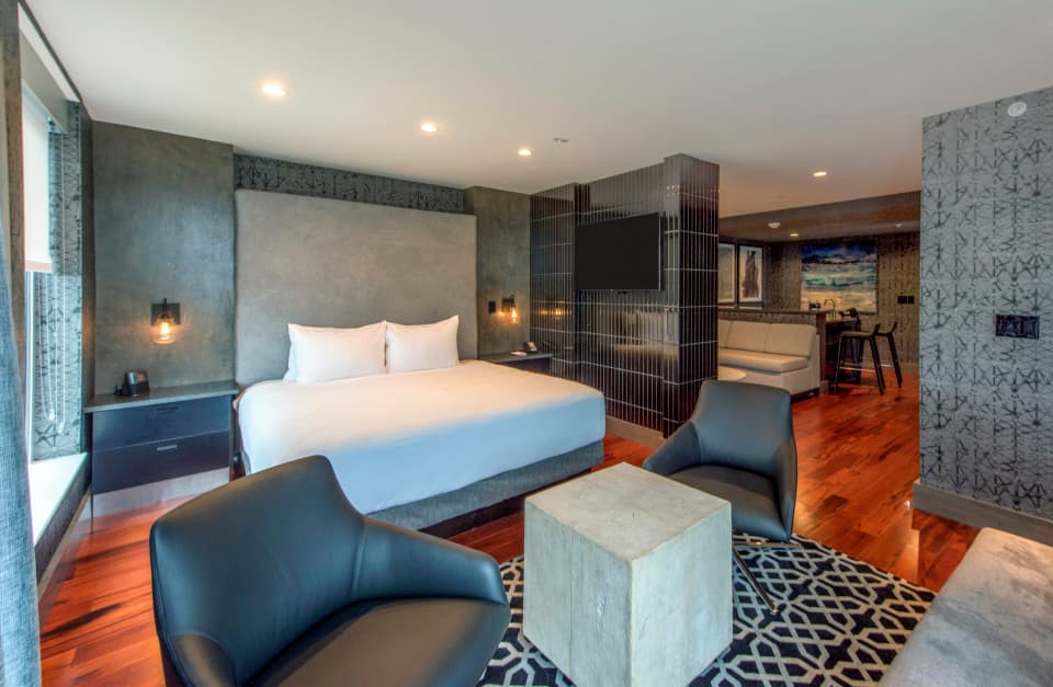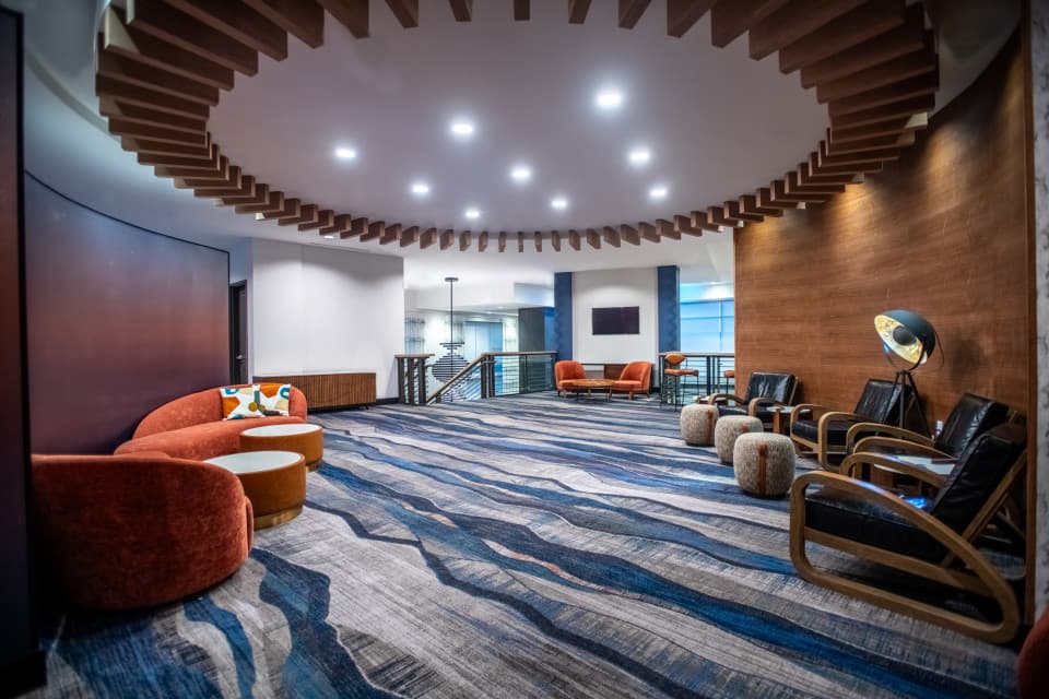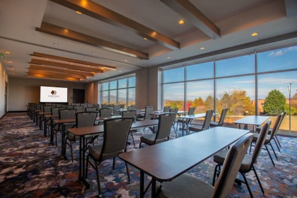 Find us in downtown Asheville, within walking distance of shops, galleries, and restaurants. In addition to our spacious rooms that offer separate sleeping areas perfect for taking that relaxing breath in-between events. Our recently renovated 2nd floor, houses our 2,020 sq. ft., flexible meeting room, that can accommodate up to 115 people. The sprawling and open air pre-function space and the floor to ceiling windows of the meeting space, bring in the natural beauty and views of downtown Asheville to our space, and provide meeting attendees a true Western North Carolina experience. Best yet, our rooftop Bar, the Montford, has the ability to host small meetings, meals and events (up to 75 guests). Make sure to stop by the front desk as often as you like for our Signature Warm Chocolate Chip DoubleTree Cookie.