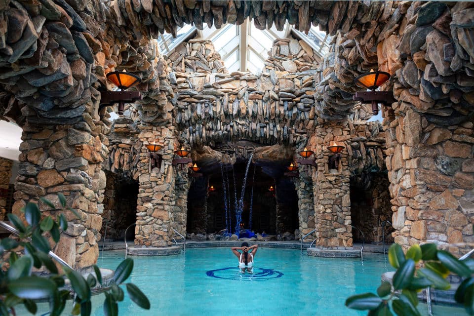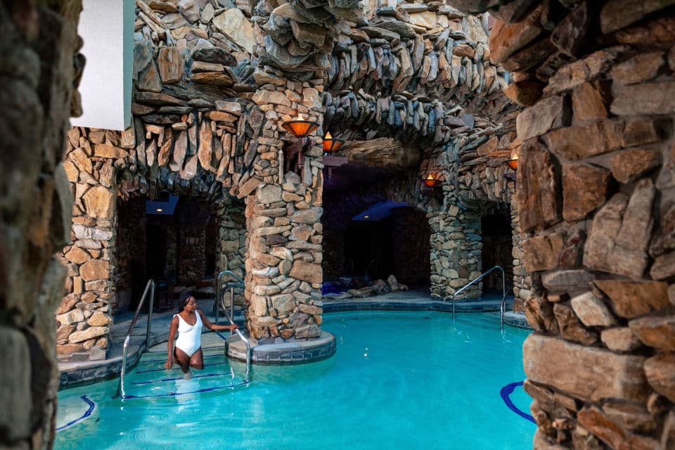•  Find ultimate relaxation at The Spa at The Omni Grove Park Inn in Asheville, North Carolina. Twenty water features, including numerous mineral-based pools, complement our subterranean spa with cavernous rock walls, arches and tunnels. Enjoy 43,000 square feet of peace and quiet along with two therapeutic waterfall pools as well as a lap pool blanketed with 6,500 fiber-optic stars and underwater music.